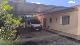 This large carport was built to accommodate the client’s campervan. The roofing material is 40mm insulated sandwich panel with a tiled effect top to blend with the client’s cortijo roof. Dimensions approx 12 metres x 6 metres